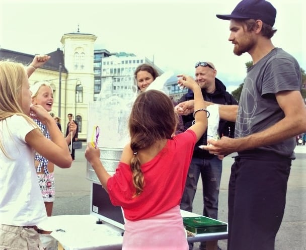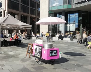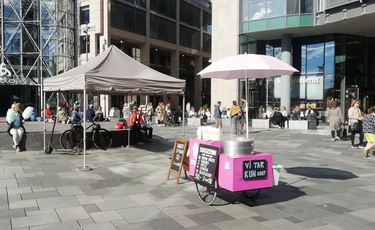 Vi har lagd sukkerspinn siden 2014, å vi har vokst fra å selge sukkerspinn i en liten gatevogn - til et selskap med selvbetjente sukkerspinn maskiner på flere steder i hele Oslo og omegn.