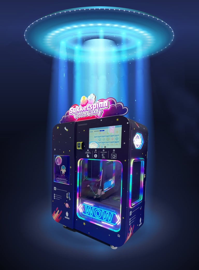 Fremtiden er her, og det er ganske kult. Sukkerspinn Spesialisten driver nå med sukkerspinn maskiner, som gir kundene våres en futuristisk sukkerspinn opplevelse. Velg din favoritt smak å se sukkerspinnet bli lagd helt magisk